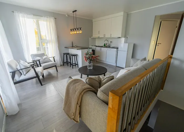 يمكن للضيوف الوصول إلى خيارات الخدمة الذاتية مثل المايكرويف والغلاية الكهربائية والبرَّاد في منطقة المطبخ الصغير المجهز. تقع هذه الشقة في المنطقة المجاورة مباشرة ل أقرب محطة حافلات Kongsbakken.